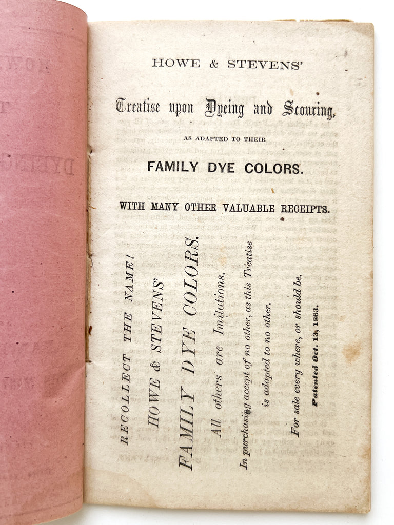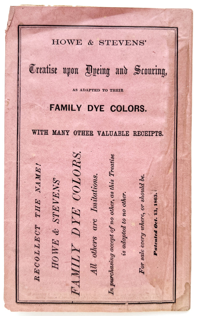 Howe & Stevens' Treatise Upon Dyeing and Scouring, as adapted to their family dye colors With Many Other Valuable Receipts.