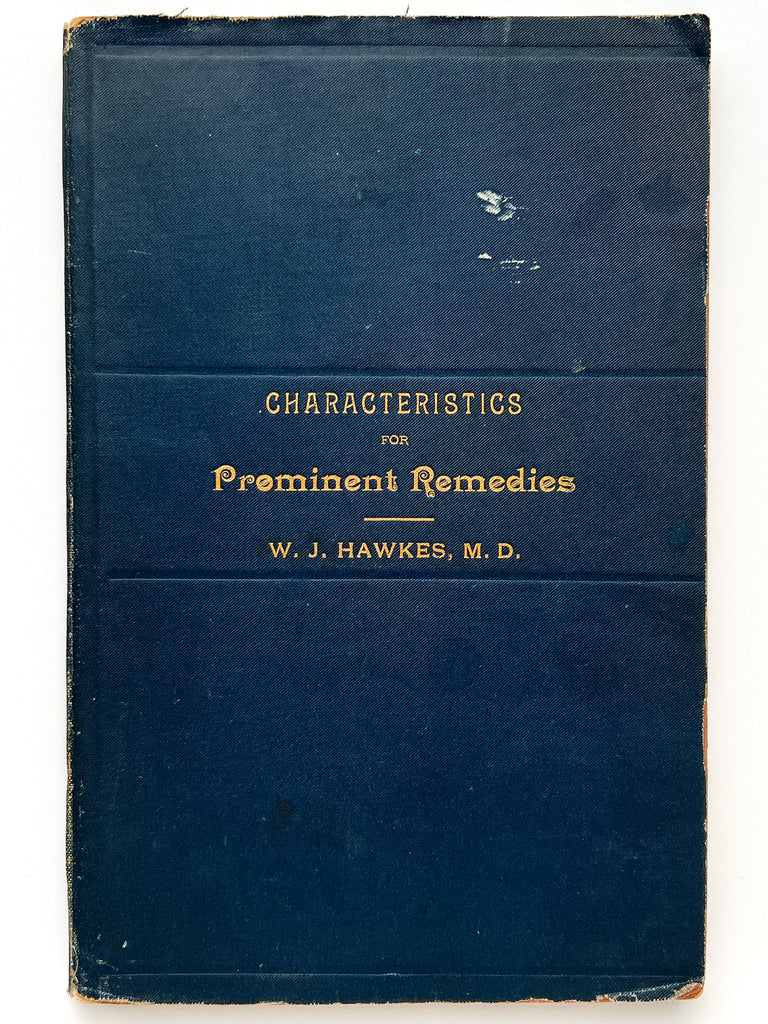 Stated third edition, revised and enlarged. Flexible cloth 12mo, 131pp. Printed recto-only. Very Good with rubbing wear, creased spine and fraying loss starting at the spine ends; stain to cover and minor discoloration. Previously published as Characteristic Indications for One Hundred Remedies..., but scarce in any edition.
