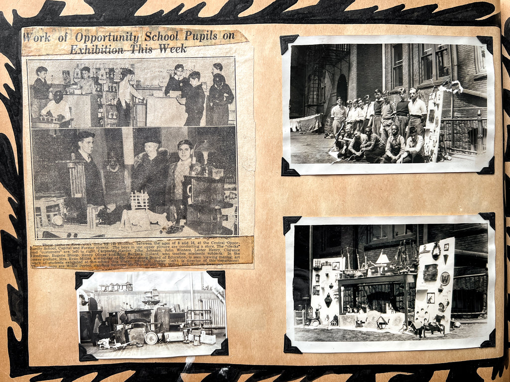 A scrapbook documenting alternative education at the Harrisburg Central Opportunity School, ca. 1937-1944+, by educator David Porter (1909-1997)