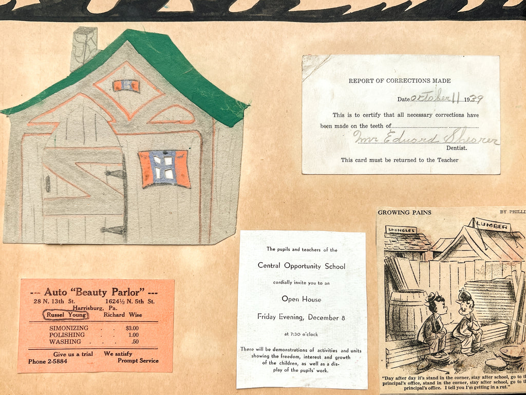 An evocative and immensely empathetic collection of primary documents from the Central Opportunity School in Harrisburg, Pa., ca. 1937-1944+. Opening in 1936, it was described as a pathway to success for “exceptional children… whose physical and mental differences make it difficult for them to adjust themselves to the normal school program…,” typically due to developmental and behavioral disorders.
