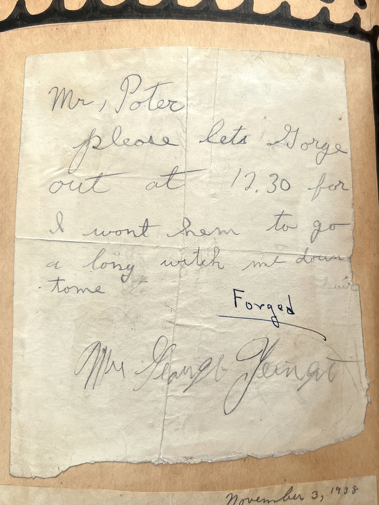 Poor nutrition and sanitation are also reflected in the preponderance of gastrointestinal distress keeping students out of the classroom: “I am very sorry that I have to send you so many notes but Richard’s bowels have been bad all night. Will you please allow him to go to the basement?” On another occasion, "his rectum was too sore.” Notes struggle, understandably, to spell "diarrhea;" one euphemizes, “kept the toilet busy.”