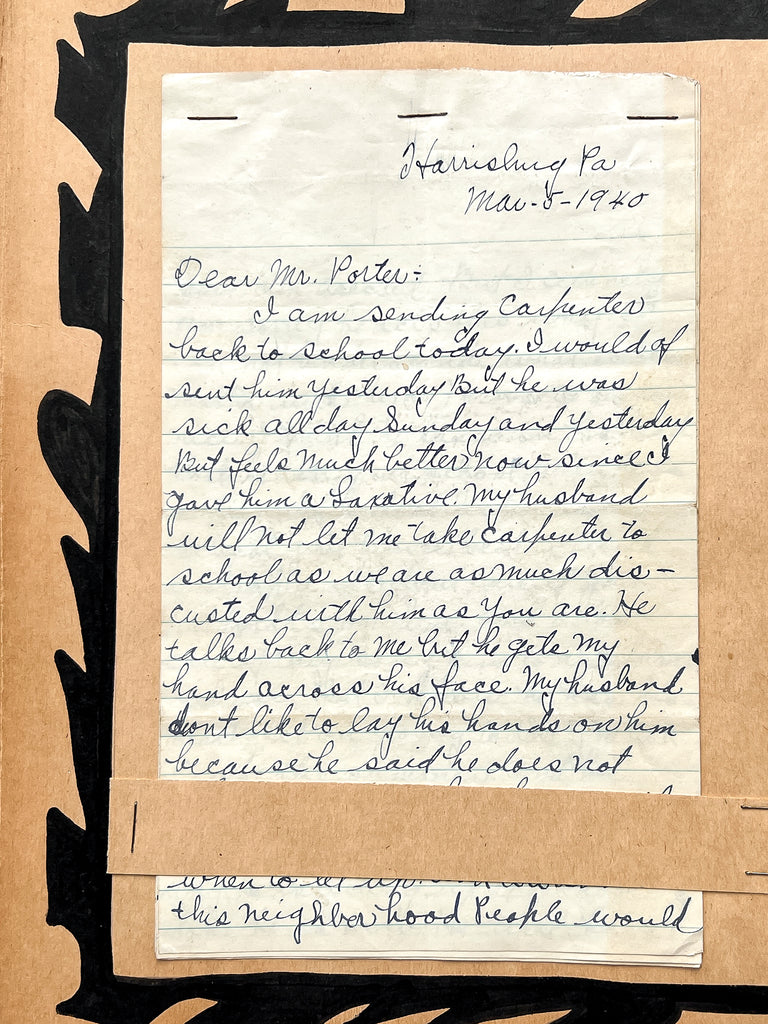 A letter from an exasperated mother implores Porter to beat her son, and says the teachers at the school are too nice. “My husband don’t like to lay his hands on him because... he would not know when to let up. And around this neighborhood people would have him arrested.” She tells Porter, “I don’t care what you do to him or how hard you punish him. I won’t say a word.” (3) Another mother disowns her son, blaming the system for facilitating his bad behavior and introducing him to criminals. (4)