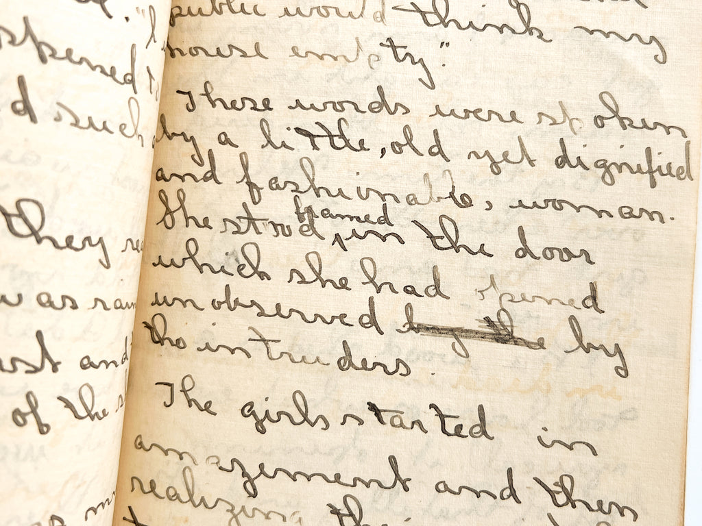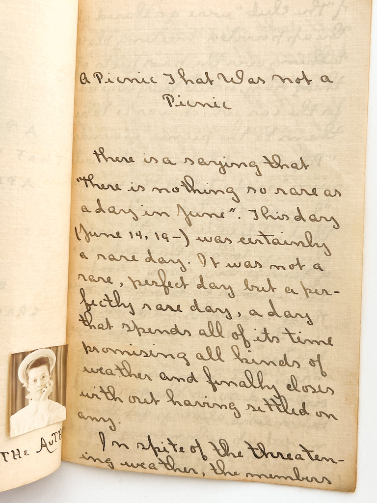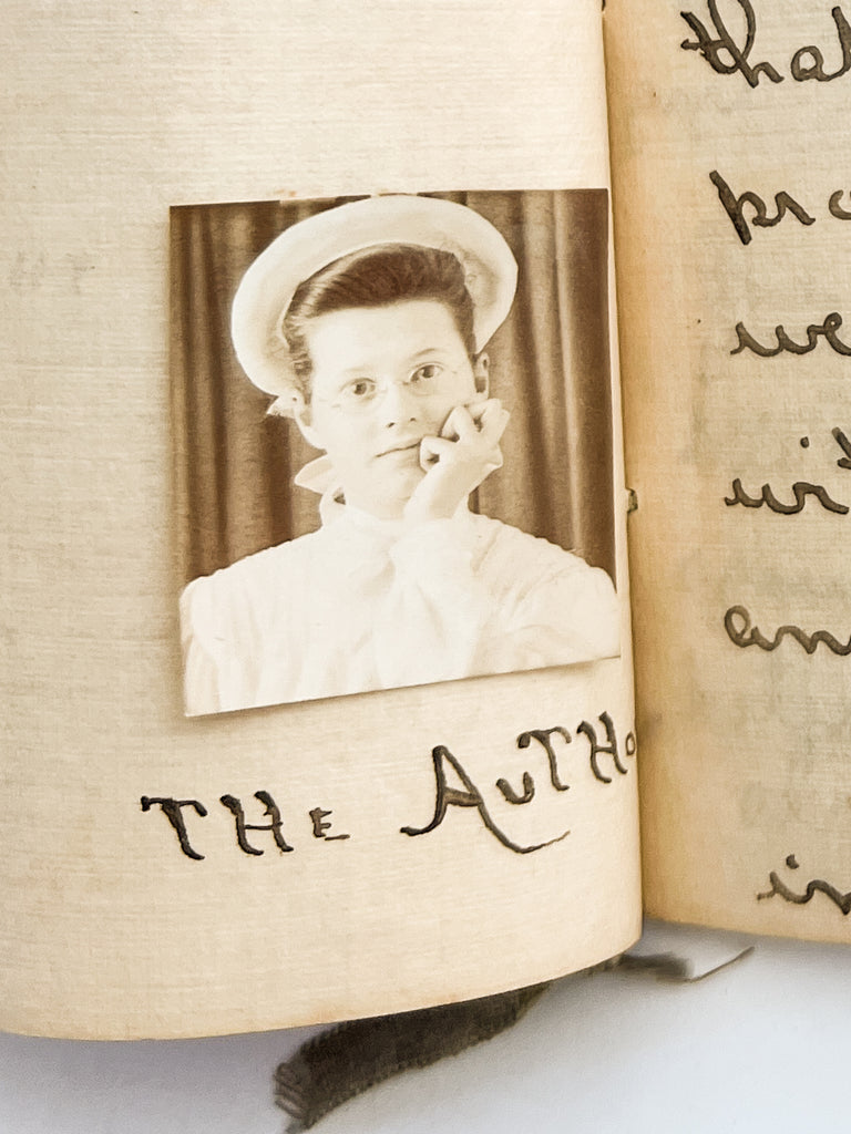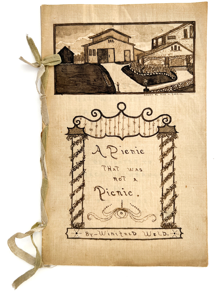 (20) manuscript pages in a very charming wrapper, illustrated by Olive Gaskell and dedicated to their friend, Grace Lushbaugh. With original photo of the author, Winifred Weld, tipped in. The location isn't identified, but the booklet was likely originally made in St. Joseph, Indiana--where Grace and Winifred are both recorded around that time. It most recently comes from Oklahoma City, where Grace died in 1953.