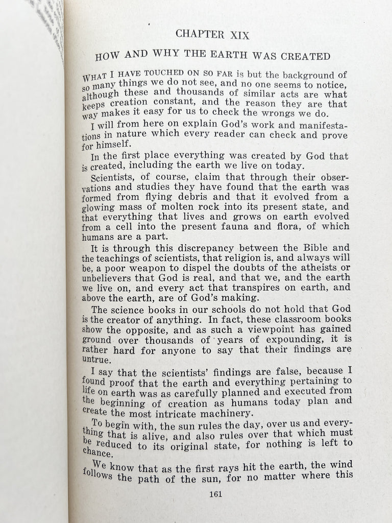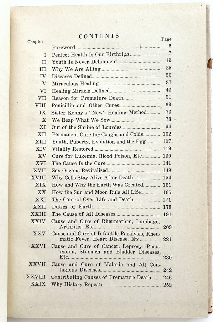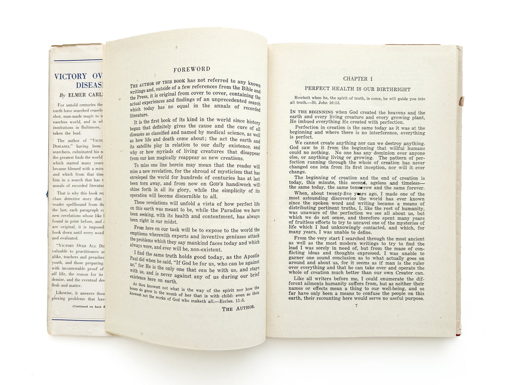 "THE AUTHOR OF THIS BOOK has not referred to any known writings and, outside of a few references from the Bible and the Press, it is original from cover to cover, containing the actual experiences and findings of an unprecedented search which today has no equal in the annals of recorded literature... It is the first book of its kind in the world since history began that definitely gives the cause and the cure of all diseases… (6)"