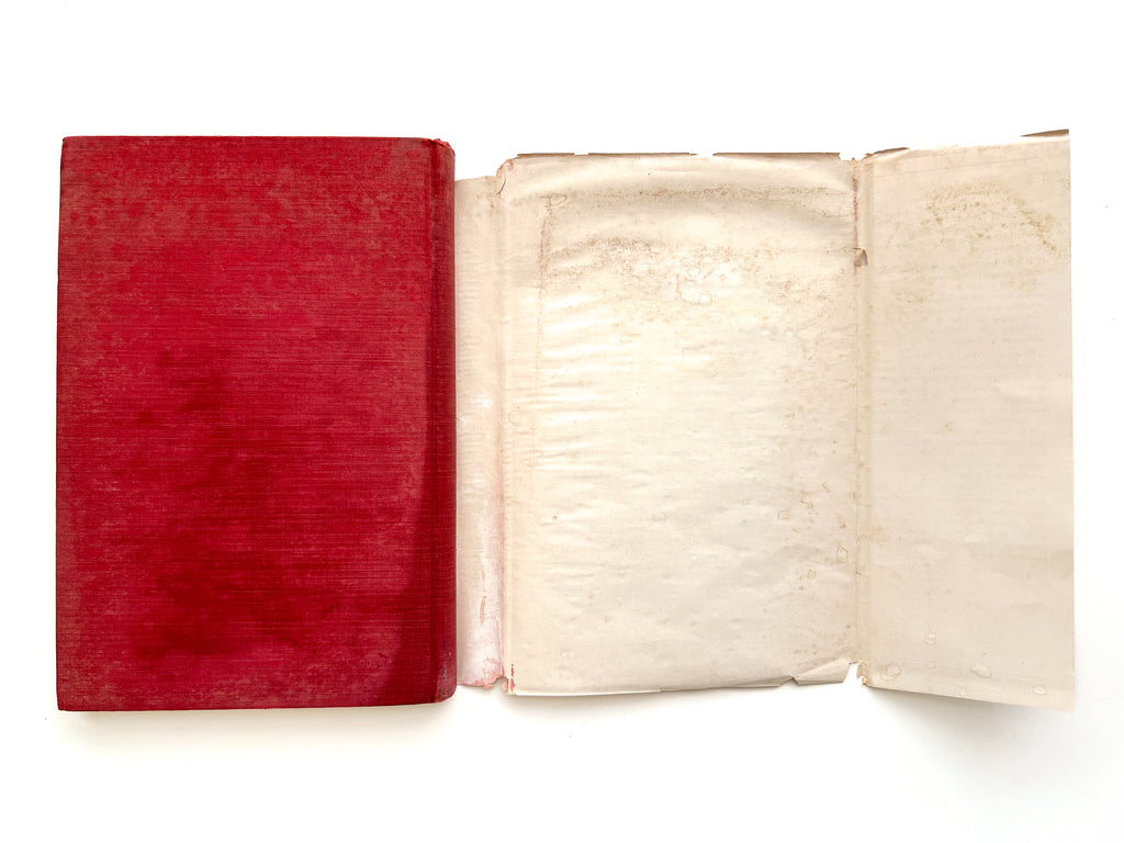 Red cloth 8vo, 260pp. With damage from water exposure that seems like it got left out in the rain: Good- with mottling to cloth, discoloration to endpapers; in a fair dustjacket with chipping and losses to the upper edge; rippling and discoloration, residue on the verso of the jacket (now in a cover). Additional photos available. 5 copies in OCLC—4 in the US: LOC, National Library of Medicine, Duke, and U. Nebraska—and one at the Military Health Library in Paris.