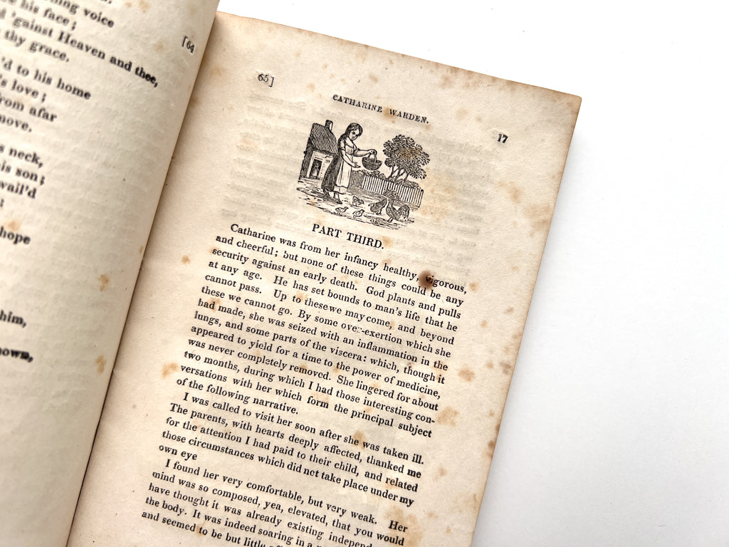 Catherine Warden's spirit grows stronger as her body grows weaker. Told from the perspective of her Sabbath school teacher, who talks with Catherine about her feelings and fears, her wishes that her family could come with her and her conflicting feelings about leaving them versus going to God. Her family also struggles: "The Spirit of God had taught these parents that they ought cheerfully resign their child unto God...but nature had its own arguments, and we must treat them very delicately. The whole family seemed to cling to Catharine, as if they would attempt to detain her" (33-34). The result is slightly more nuanced, and helpful, than stories that model only unquestioning and happy submission to what they're told is God's will.