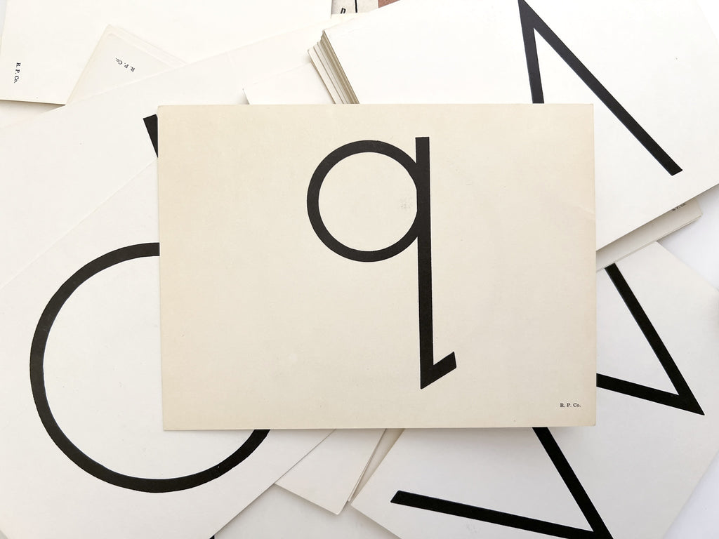 Reardon was active in Ohio regional educational publishing in the 1960s. The cards are unusually compelling for a simple learning aid, created from hand-lettered originals in a "Futura" style, but with slight unevenness in tone and stroke evident only upon close inspection which betrays their manual formation.