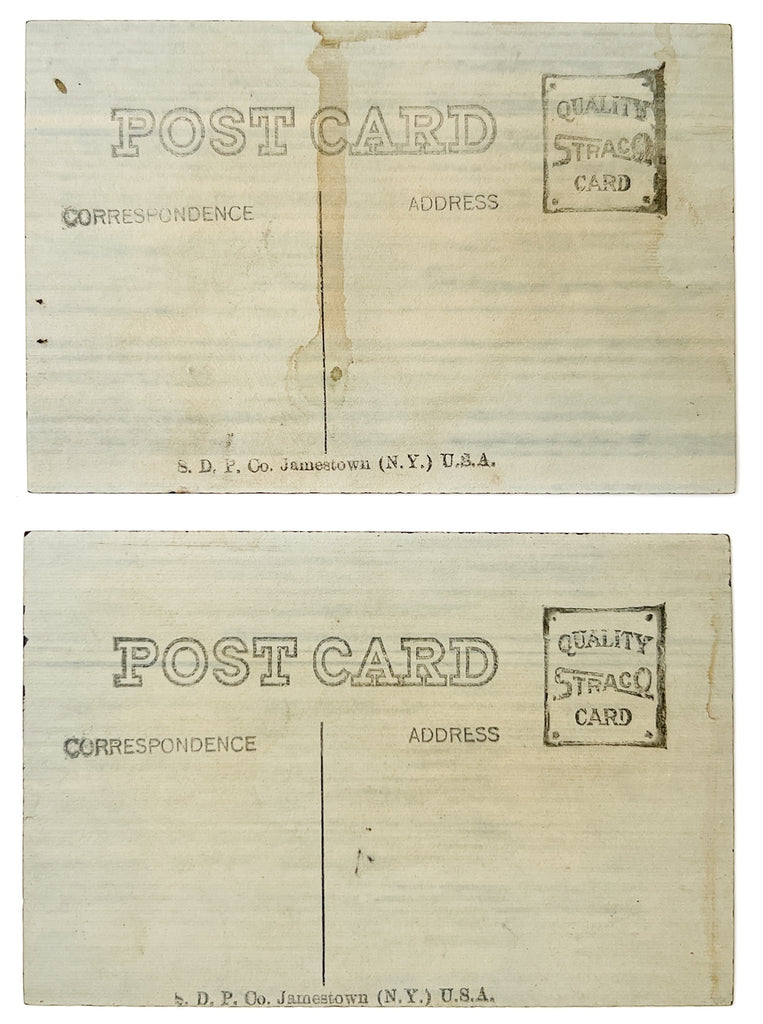 The turn of the century brought a resurgence of interest in ferrotype photography. Instead of requiring a thin sheet of metal, specially prepared papers, like these "Quality Straco Cards" made by S. D. P. could be used to produce direct, instantaneous photographs--similar to the rise, fall, and nostalgic resurgence in Polaroid's popularity.