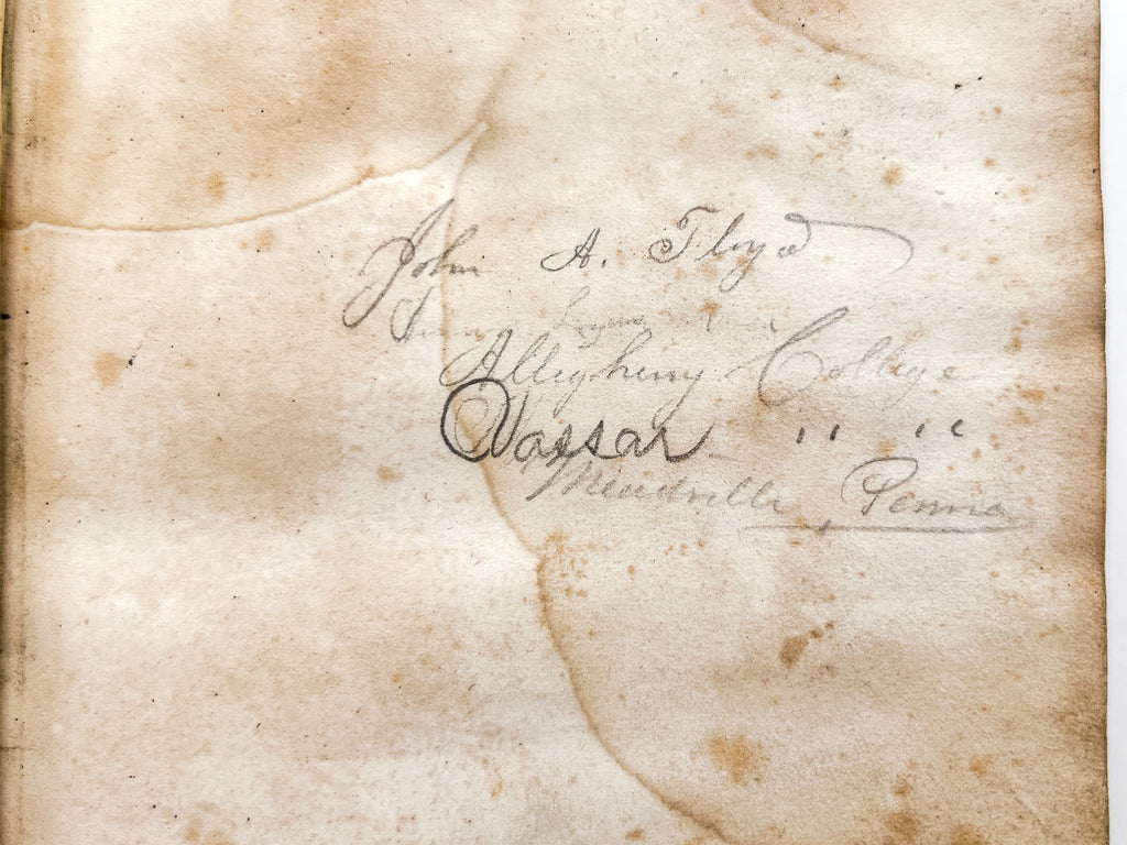 Brown blind embossed cloth 12mo, 295pp + (4) ads. 1851, stated stereotype edition, earliest year recorded in print. A Good copy only with persistent tidemarks and foxing; loss to the cloth at the spine ends, boards exposed at corners. Tear to the bottom corner of the two advertising leaves, no loss of text. Ownership signature of John Floyd, then his daughter, Anna, who studied at Vassar; pencil notes to ffep. OCLC locates 2 copies in the US and 6 of the 1852 reprint. No records in RBH.
