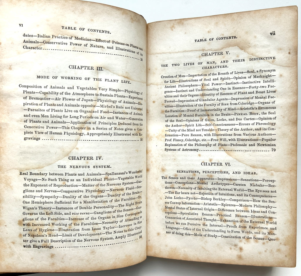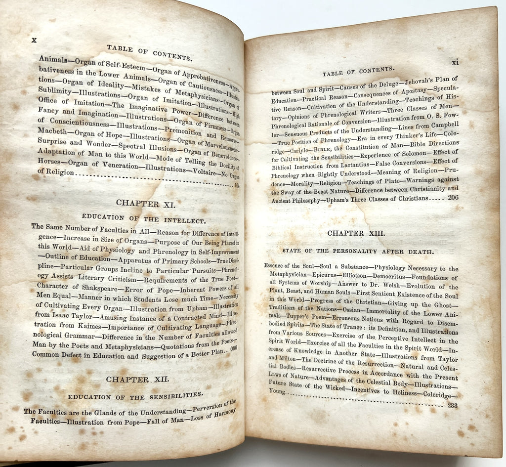 A convergence of Christianity, Phrenology and Spiritualism, with the expected coverage of phrenological organs, etc. Among the tour through all things physiological and philosophical, the "three aspects" ultimately manifest in distinctions of morality. A peek at the table of contents attests to the scope and Newman's broad source material, from John Bunyan to Millerites, narcotics, color perception, spirit rapping, and the future of wickedness.