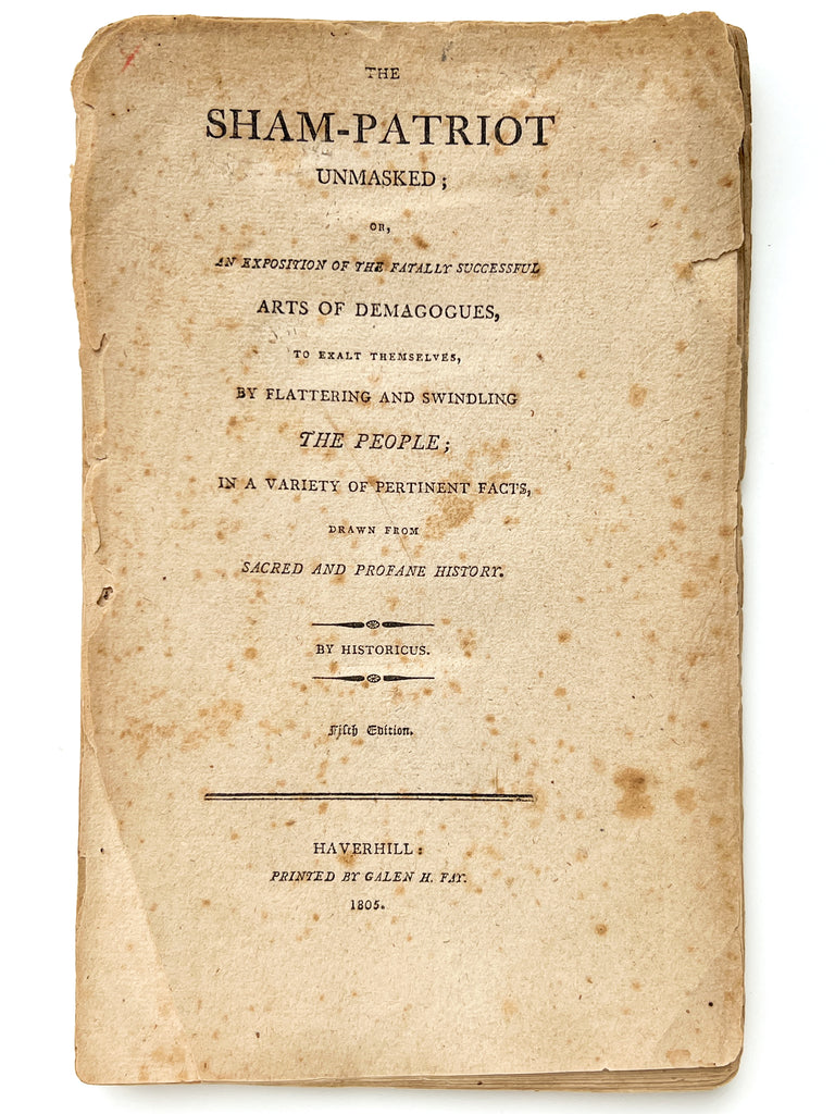 The Sham-Patriot Unmasked; or, An exposition of the fatally successful arts of demagogues, to exalt themselves by flattering and swindling the people in a variety of pertinent facts drawn from sacred and profane history